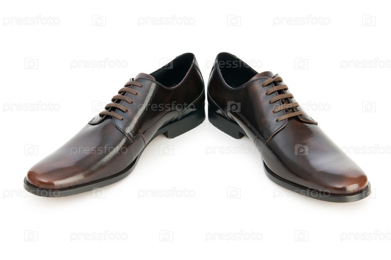 Темно-коричневые мужские лакированные туфли, изолированные на белом фоне