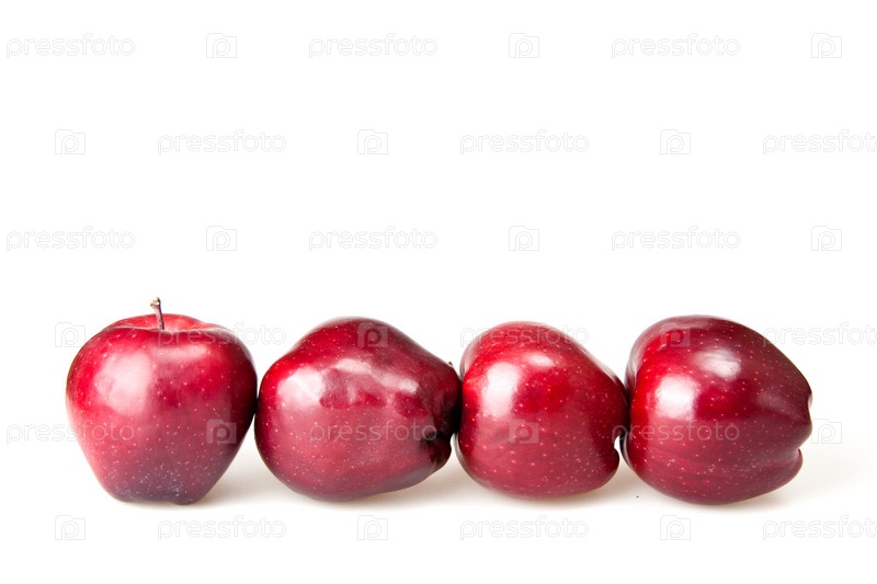 Четыре красных яблока на белом фоне