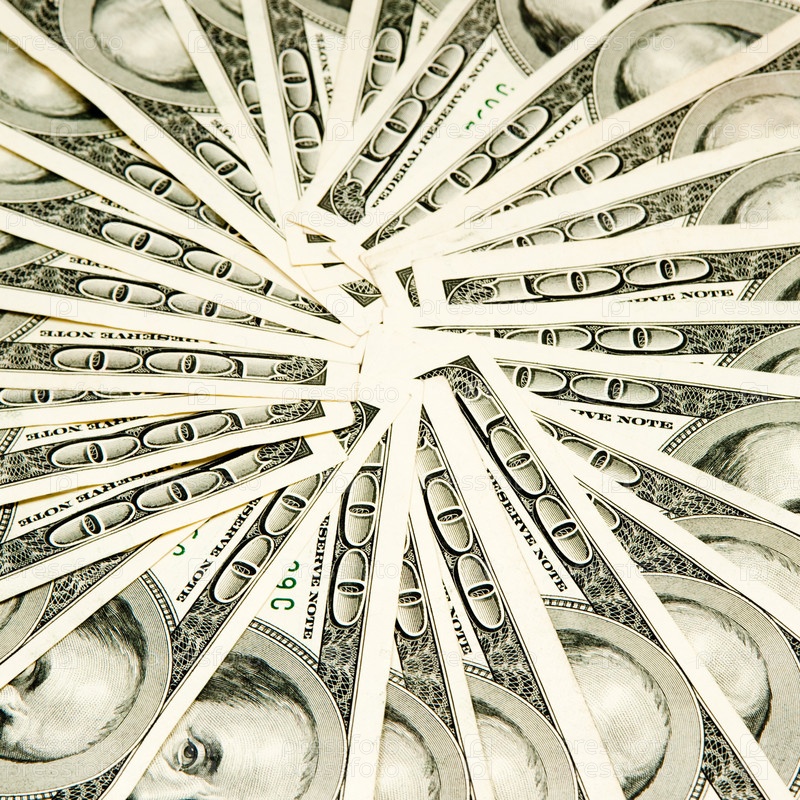 Американские доллары выложены веером по кругу