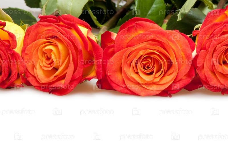 Оранжевые розы на белом фоне
