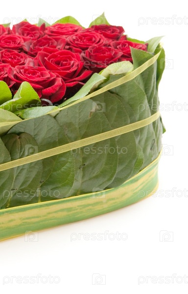 Красные розы в плетеной корзине