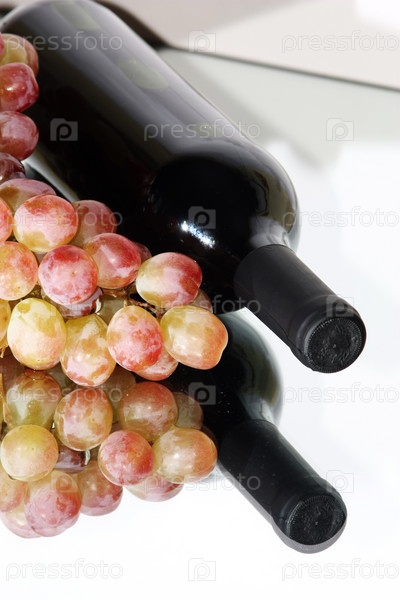 Гроздь винограда и бутылка вина