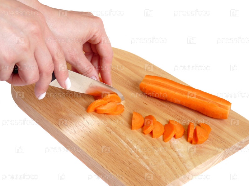 Женские руки, нарезающие морковь