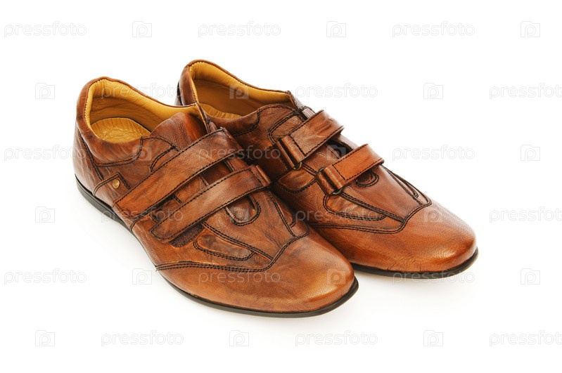 Мужские коричневые туфли на белом фоне