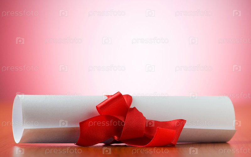 Бумажный свиток, перевязанный красной лентой, на столе