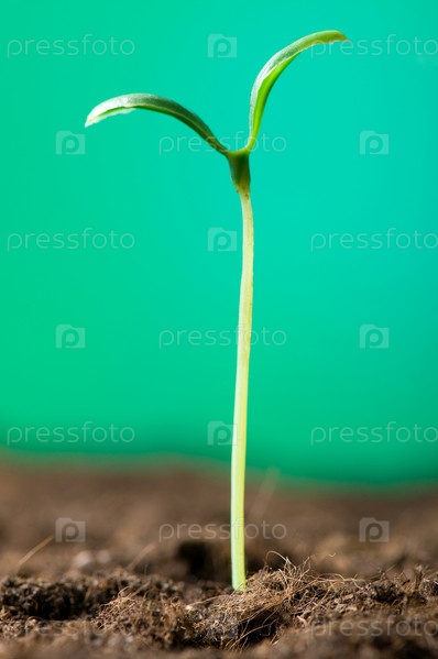 Зеленый росток на зеленом фоне