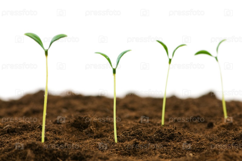 Зеленые ростки на белом фоне