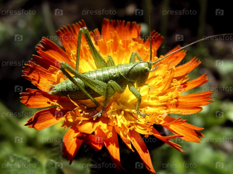 Кузнечик на цветке крупным планом