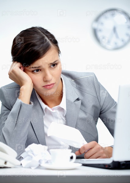 Расстроенная деловая женщина сидит за столом в офисе