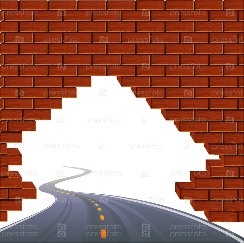 Асфальтированная дорога, проходящая через стену