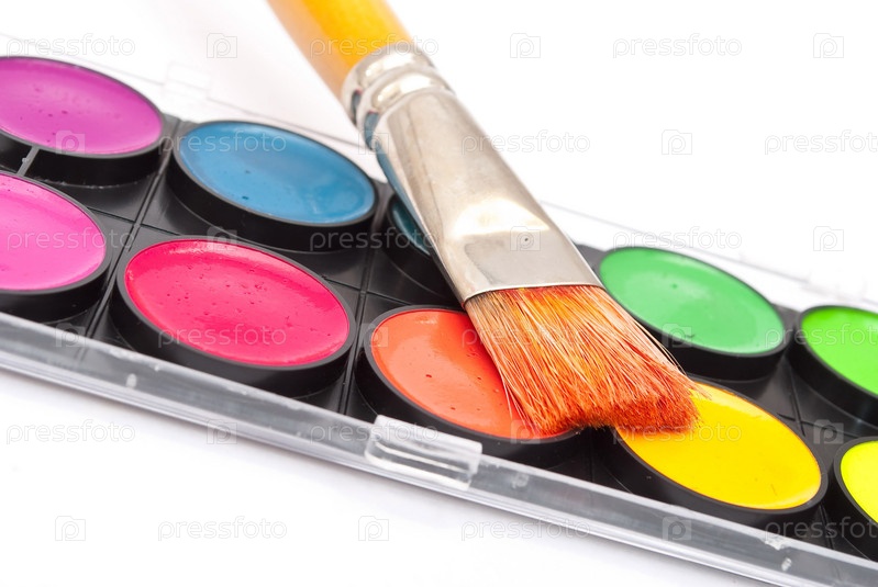 Акварельные краски с кисточкой