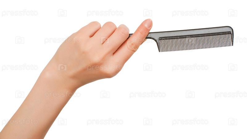 Расческа в руке на белом фоне