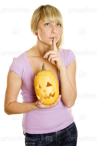 Молодая женщина с тыквой в руках