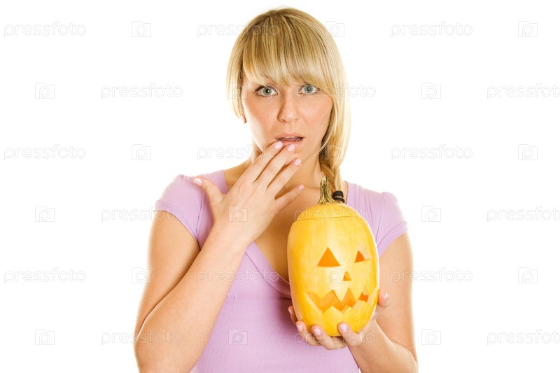Молодая женщина с тыквой в руках