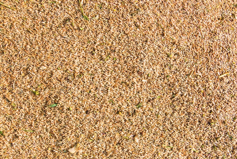 Фон из пшеничных зерен с вкраплениями сорняков