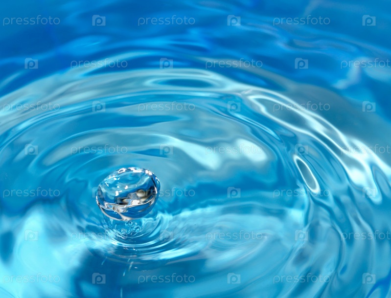 Блестящая капля воды над водной поверхностью