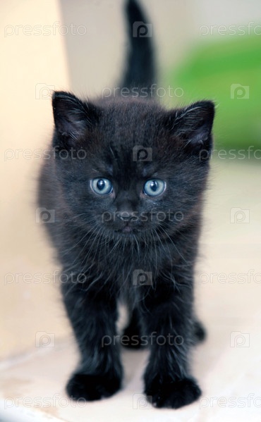 Портрет красивого черного котенка с голубыми глазами