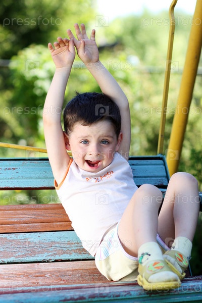 Маленький мальчик сидит на качелях