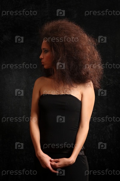 Красивая пышноволосая девушка на черном фоне