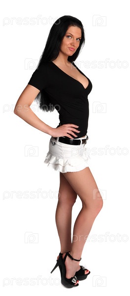 Красивая темноволосая девушка на белом фоне