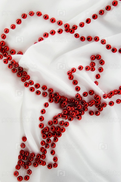 Красные бусы на белом шелке
