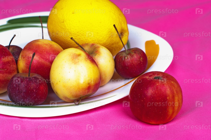 Блюдо с фруктами на розовом фоне