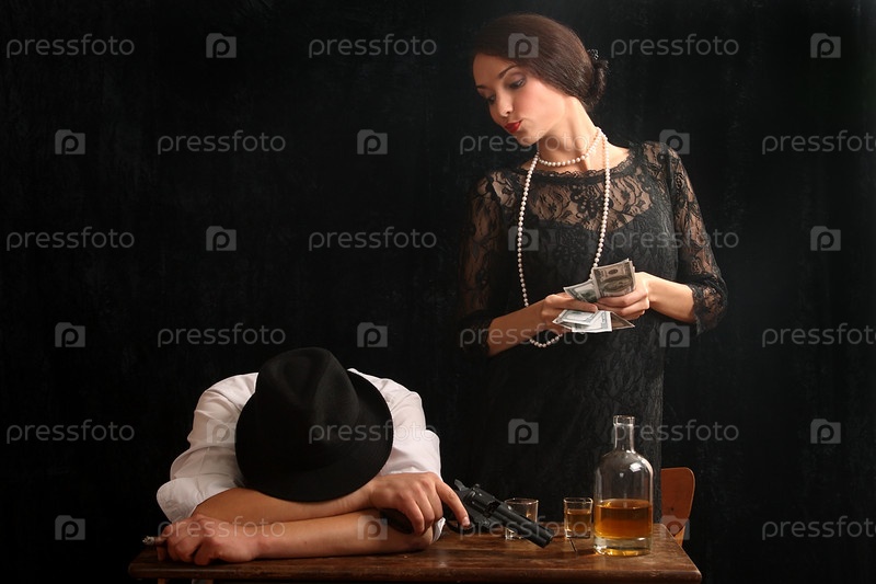 Мужчина с пистолетом в баре с молодой девушкой