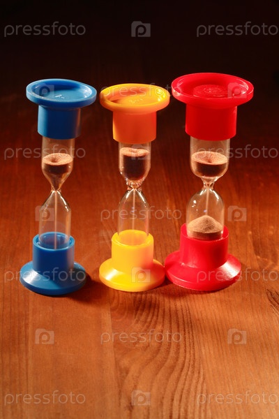 Песочные часы на деревянной поверхности