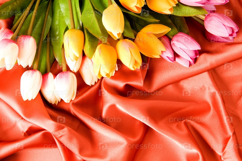 Тюльпаны на красной ткани