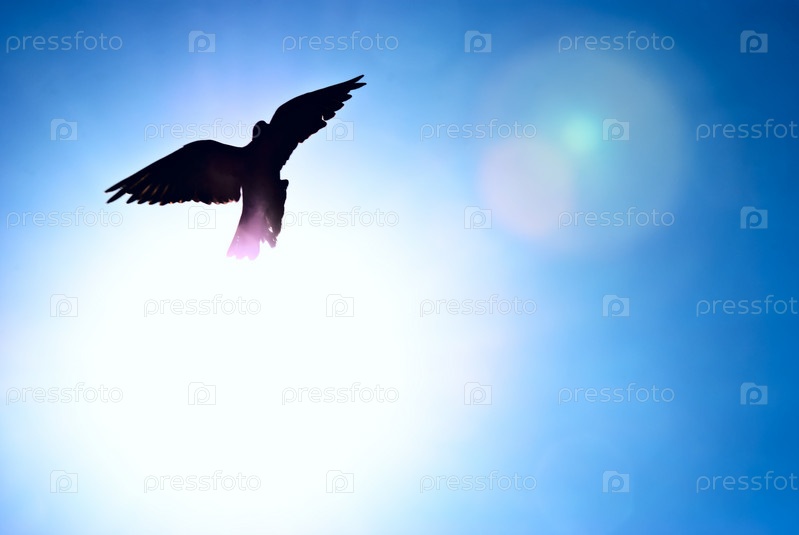 Голубь на фоне голубого неба
