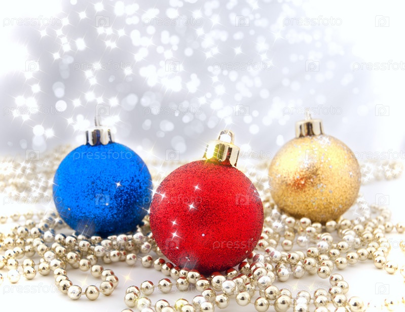 Рождественские украшения на блестящем фоне