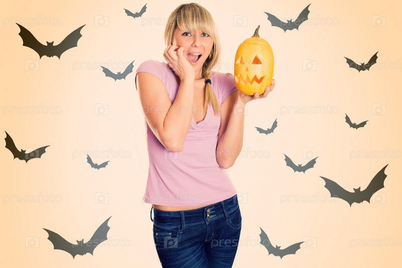 Портрет девушки с тыквой в руках