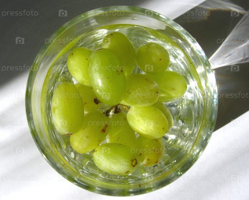 Виноградные ягоды в стеклянной посуде