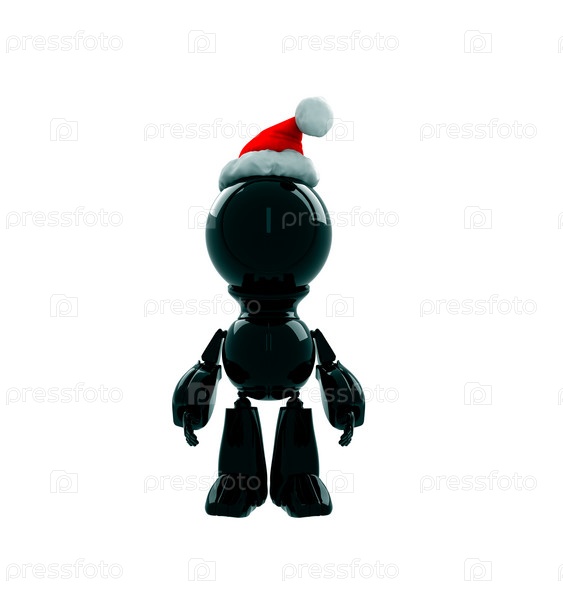 Черный робот в шапке Санты