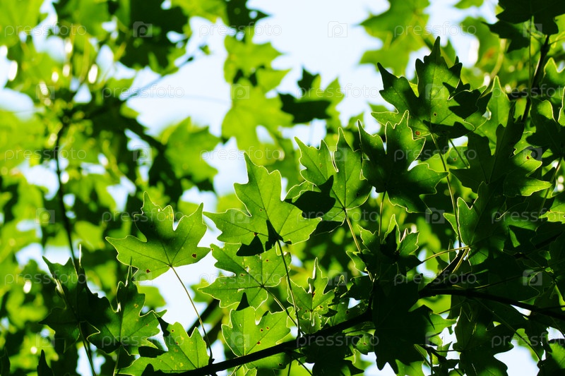 Зеленые листья клена в городском парке в весенний день
