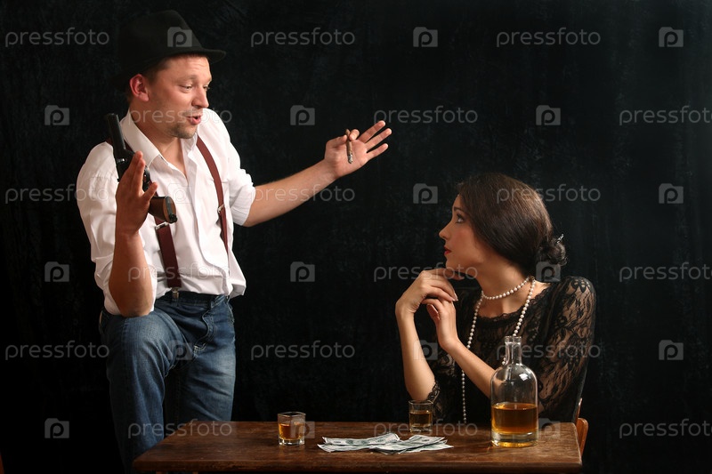 Мужчина-гангстер разговаривает с красивой женщиной в баре