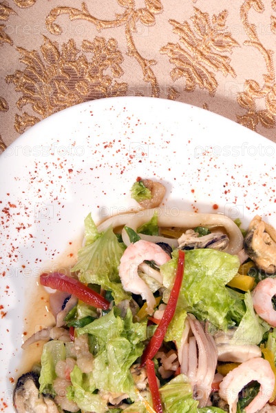 Салат из морепродуктов, салата и овощей