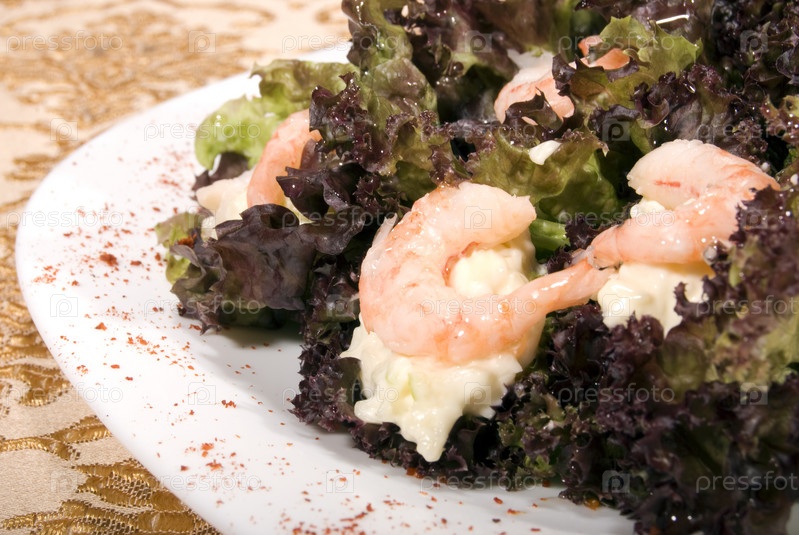 Свежий салат с креветками и соусом