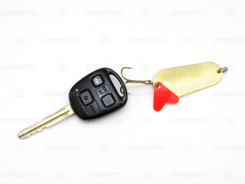 Ключ от автомобиля на рыболовном крючке