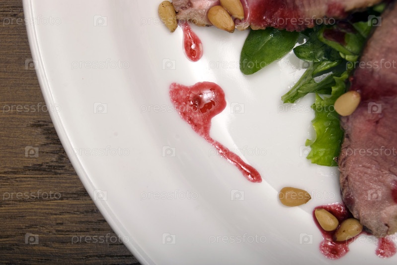 Мясо с салатом и орехами