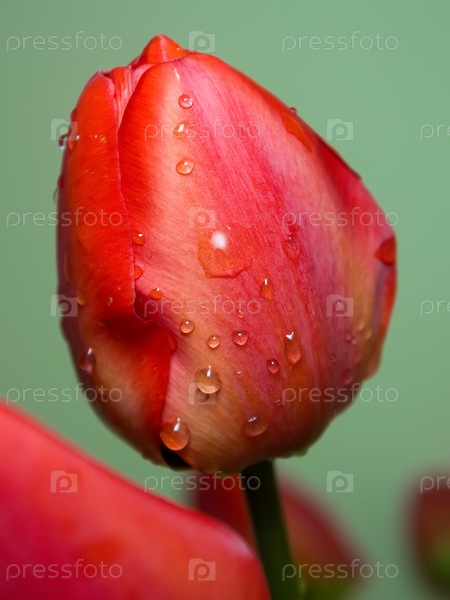 Капли дождя на красном тюльпане