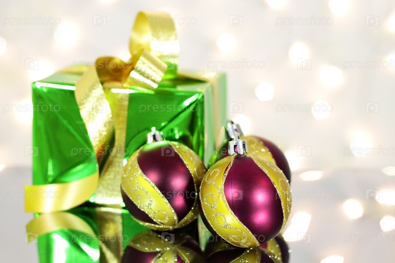Подарочная коробка и новогодние украшения
