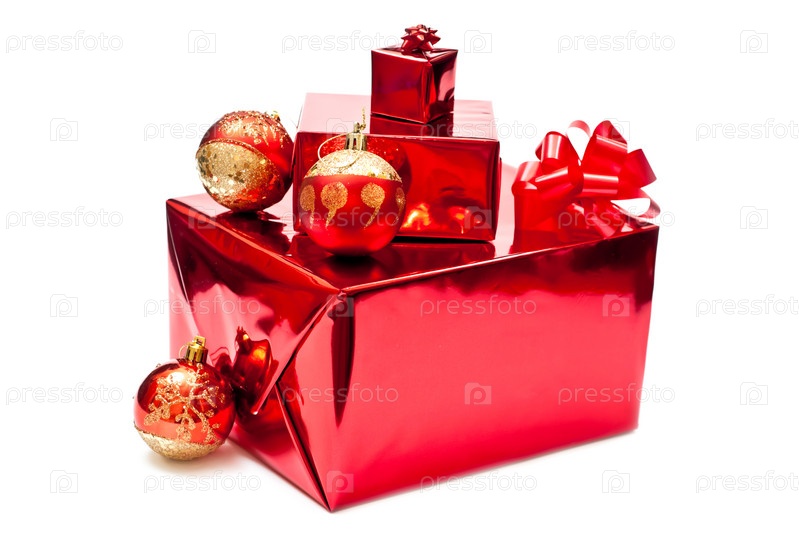 Красные рождественские подарки на белом фоне