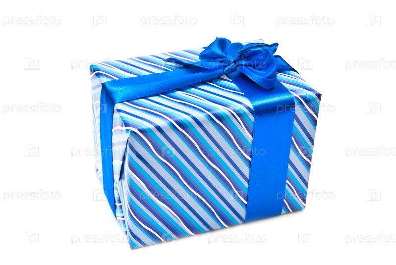 Голубая подарочная коробка на белом фоне