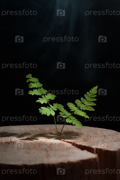 Листья папоротника, проросшие сквозь пень