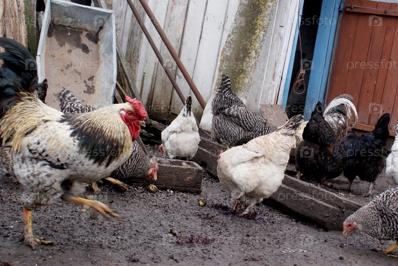 Курицы и петух во дворе