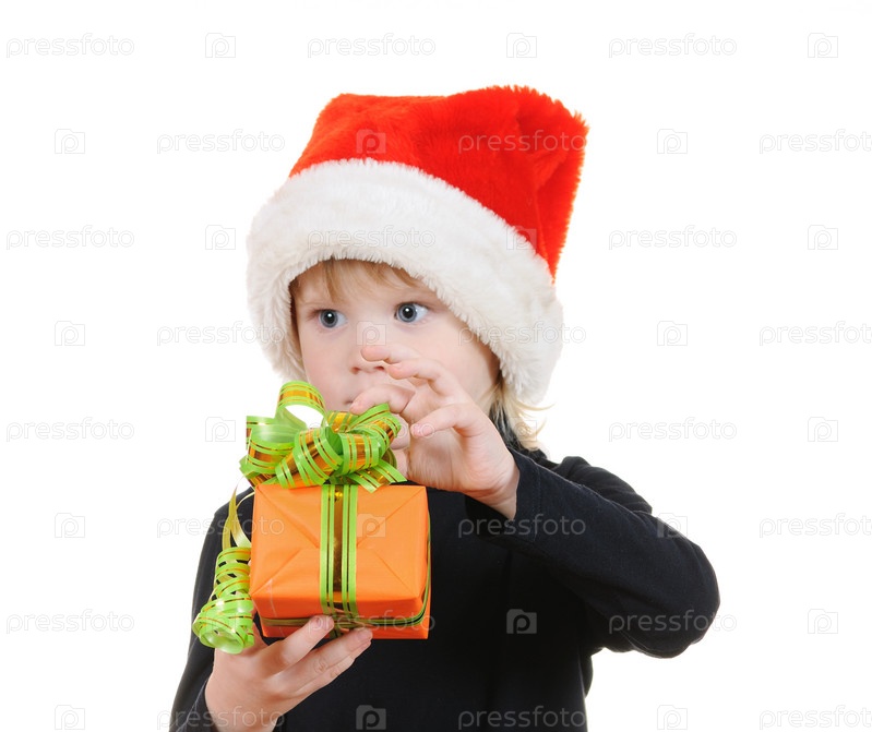 Ребенок в шляпе Санта-Клаус изолирован на белом фоне