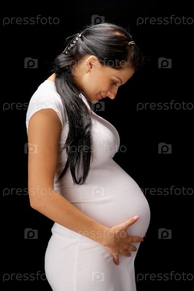 Беременная женщина, изолированная на черном фоне