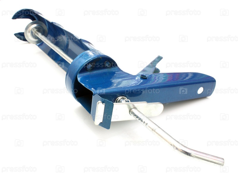 Строительный пистолет для герметика из металла темно-синего цвета на белом фоне