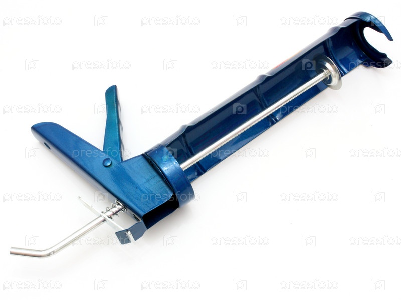 Строительный пистолет для герметика из металла темно-синего цвета на белом фоне